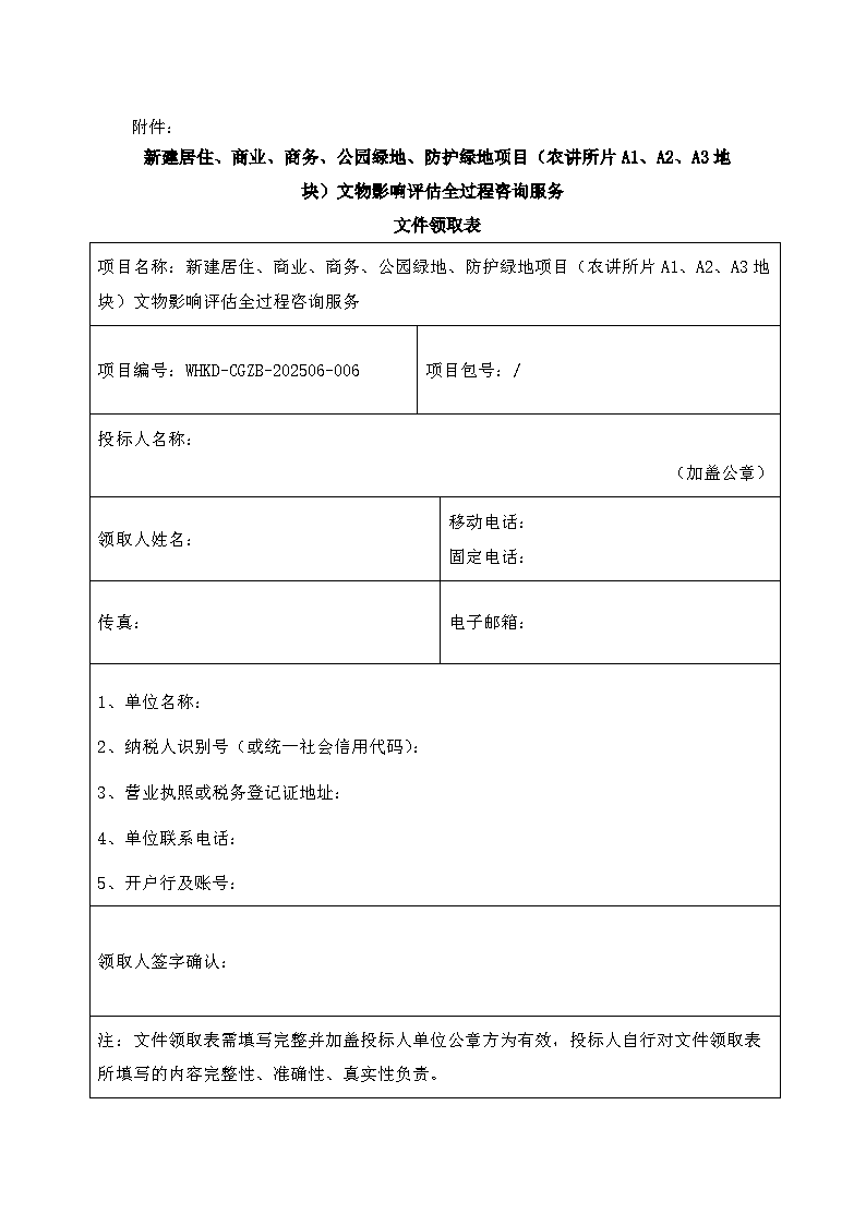 (2)加蓋公章的文件領取表及營業(yè)執(zhí)照或事業(yè)單位法人證書或其他組織的證明文件復印件各一份(文件領取表格式及要求詳見招標公告附件);
